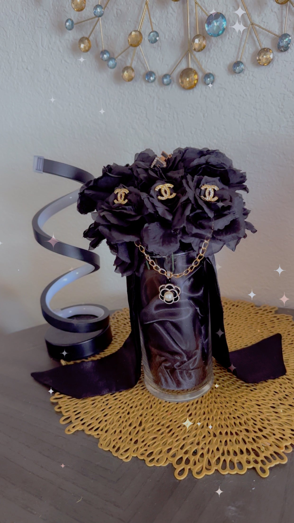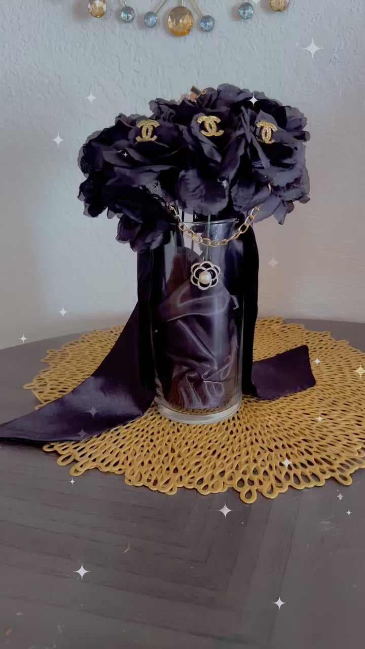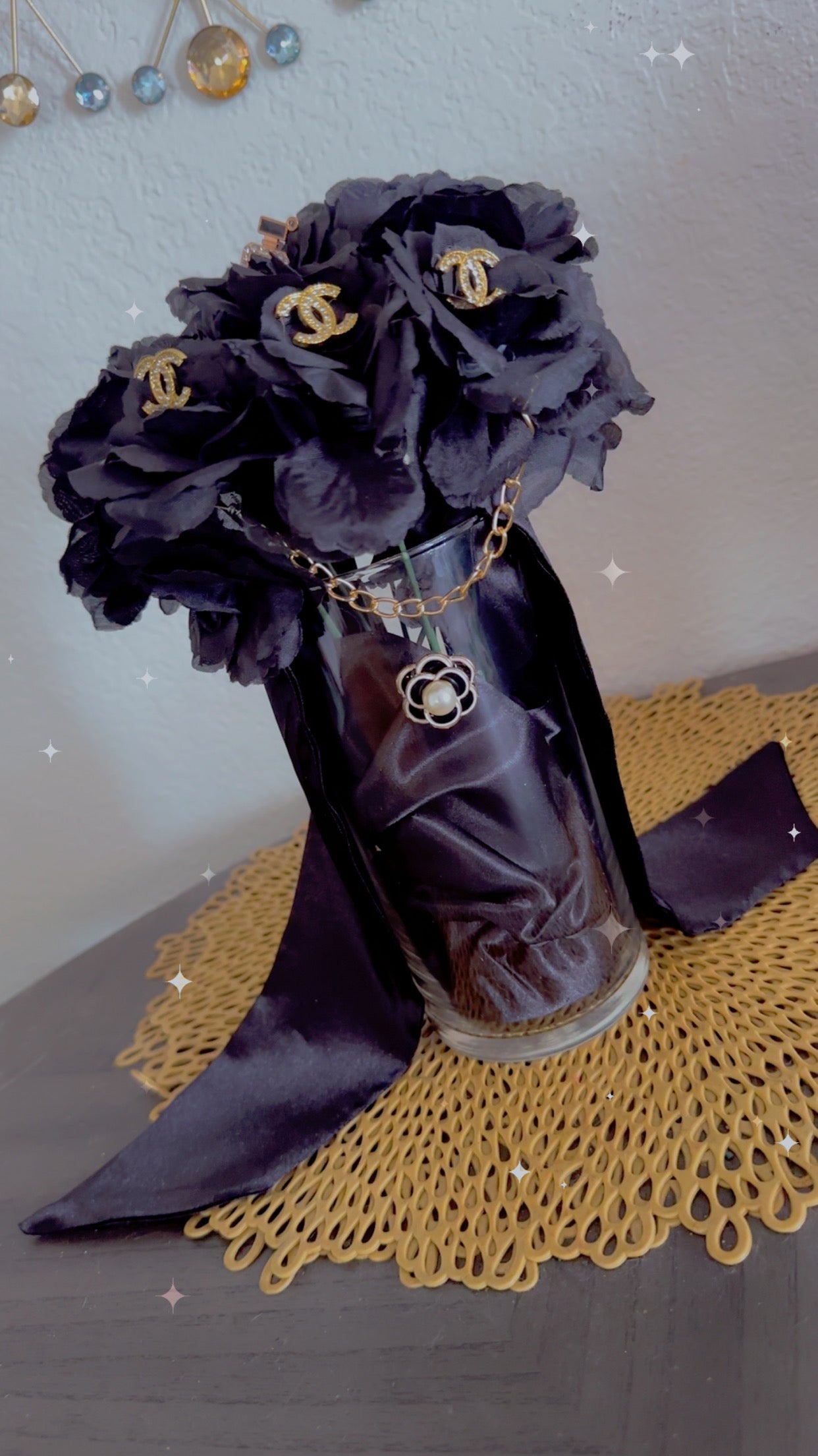 Elevate your living space to new heights of elegance with our stunning Chanel-inspired floral arrangement. This exquisite bouquet, featuring high-quality artificial white and pink blooms, embodies timeless sophistication and feminine allure. Nestled in a decorative vase wrapped in luxurious satin and mesh, this arrangement is not just a floral display; it’s a statement piece that transforms any room into a chic sanctuary.