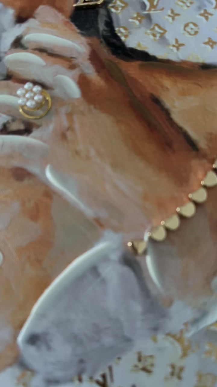 Add elegance and modern fashion flair to your space with this Louis Vuitton-inspired luxury wall art. Featuring a chic woman sipping coffee from an LV cup, this portrait embodies confidence, beauty, and sophistication. The artwork is enhanced with 3D golden flowers and pearl details, framed in a sleek gold border that exudes glamour and exclusivity.